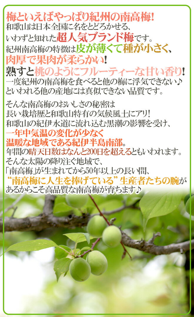 生産地 和歌山県 内容量 約5kg(生ものですので多少の前後はお許しください) 等級・サイズ ちょっと訳あり品 熟梅 2L〜3Lサイズ 保存方法 冷暗所・冷蔵庫で保管し、なるべくお早目に加工してください。