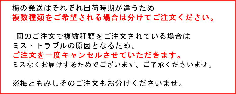 梅酒・梅ジュース用 有機栽培青梅 【出荷時期】 6月上中旬ごろから出荷予定 梅酒・梅ジュース用 有機紫南高梅(パープル南高) 【出荷時期】 6月中下旬ごろの出荷予定 梅酒・梅ジュース・梅肉エキス用 有機大粒青梅 特選品 【出荷時期】 6月上中旬ごろから出荷予定 梅干し用 有機完熟南高梅 【出荷時期】 6月中下旬ごろから出荷予定 梅干し用用 有機 特選 完熟南高梅 【出荷時期】 6月中下旬ごろから出荷予定 梅干し用(お弁当にぴったり!) 有機完熟小梅(南高梅) 【出荷時期】 6月上旬ごろから出荷予定 ★